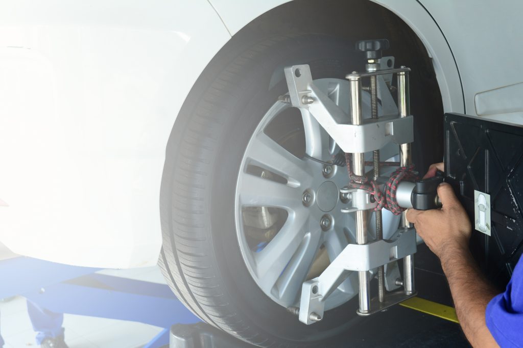Signs include uneven tire wear, vehicle pulling to one side, steering wheel vibration, or an off-center steering wheel when driving straight.